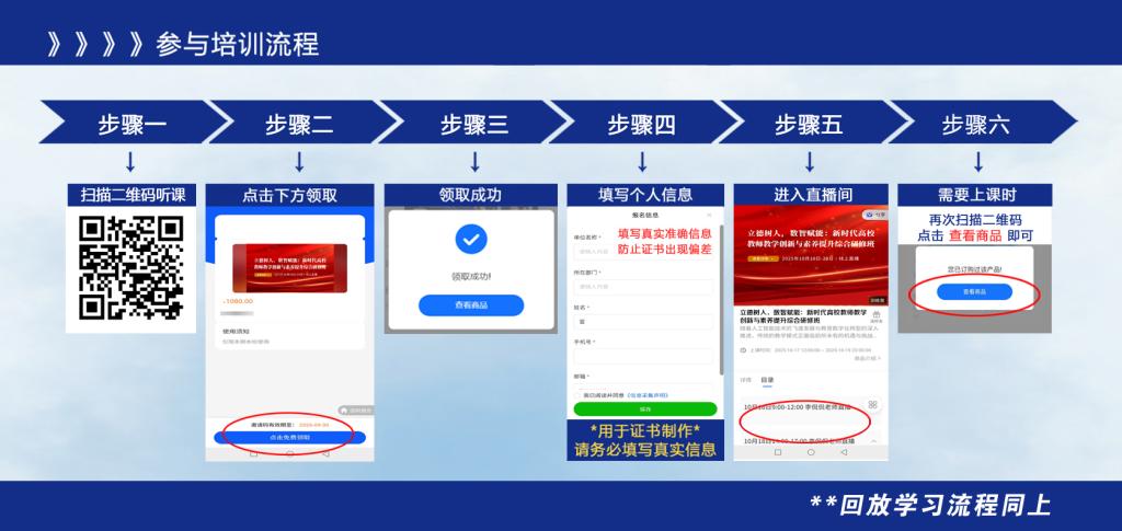 使用微信识别下方二维码,点击“免费领取”→领取成功→填写个人信息→进入直播间→上课时,再次扫描二维码→点击“查看商品”即可。
