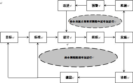 3.结合以上“目标链、标准链”,按照“目标-标准-设计-组织-实施-诊断-激励-改进目标和标准”及“监测-预警-改进”的流程构建教师发展螺旋,实现教师的自我完善和发展。